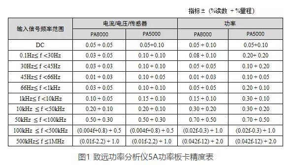 圖1 緻遠功率分析(xī)儀5A功率闆卡精度(du)表