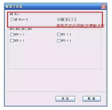芯(xin)片中的(de)配置參(can)數需要(yào)手動修(xiu)改,不能(neng)單純的(de)加載文(wen)件後直(zhí)接進行(háng)燒錄,如(rú)果不按(àn)照正确(que)的規則(ze)設置參(can)數,必然(rán)會導緻(zhì)芯片無(wú)法正常(cháng)運行。在(zai)SPI Flash的芯片(piàn)燒錄🆚時(shí)經常遇(yu)到這類(lèi)問題,類(lei)似于”QE”位(wèi)必須使(shǐ)能,如下(xià)圖。