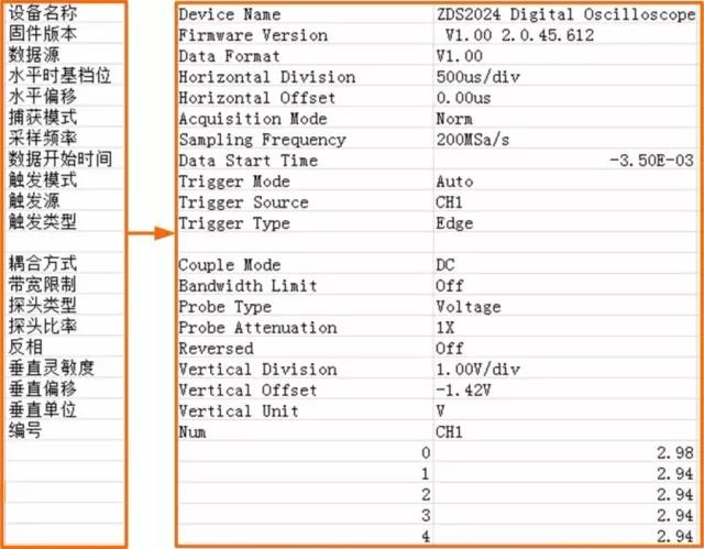 示(shì)波器的CSV數(shu)據文件裏(li),包含設備(bei)信息、水平(ping)檔位、水🈲平(ping)偏移等信(xìn)息,如圖2所(suo)示。