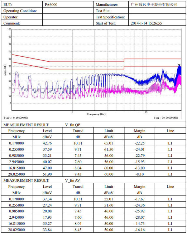 圖3. PA6000傳(chuán)導騷擾測量結(jie)果