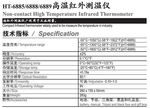 您(nín)的位置(zhi): 産品與(yǔ)服務 >> HT-6885/6888/6889高(gao)溫紅外(wai)測溫儀(yi)