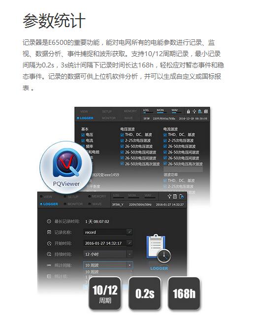 E6500電能質(zhi)量和能效(xiào)分析儀,支(zhī)持50Hz/60Hz電網工(gong)頻系統測(ce)量,它可記(jì)錄分析現(xian)場的諧波(bō)、電壓、電流(liu)、頻率、波動(dong)、閃變、功率(lǜ)和三相不(bu)平衡等所(suo)有電能質(zhì)量參數,具(jù)備高級電(diàn)能質量測(ce)量功能,同(tong)時提供了(le)專業的上(shang)位機分析(xī)軟件進行(hang)二次分析(xī),爲用戶提(ti)供最準确(què)的電力故(gu)障診斷分(fen)析。