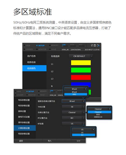 标準支(zhi)持:IEC61000-4-30 A級标準(zhun)/IEC61000-4-7諧波測量(liàng)/EC61000-4-15閃變測量(liàng)/行業領先(xian)測量精度(du)0.1