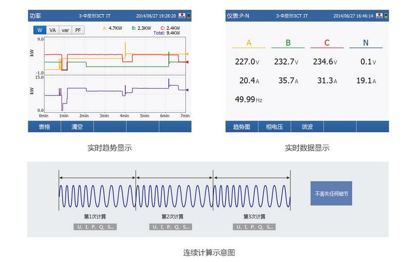 200ms刷(shua)新率、無間隙連(lián)續運算,實時顯(xiǎn)示功率數據與(yu)趨勢