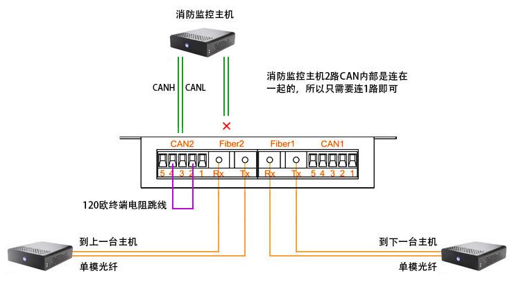 CANHUB-AF2S2與西門子消(xiao)防監控主機(jī)的連線方式(shì)如圖所示:
