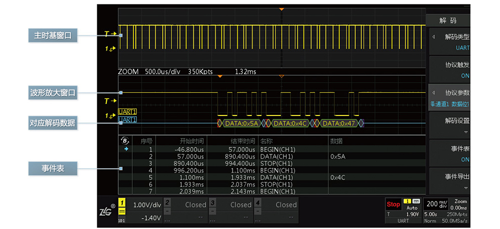 ZDS2024 Plus示波器史(shi)無前例地免(mian)費配備了25種協(xié)議解碼,CAN、LIN、I2C、SPI、UART、USB、PS/2、DALI、Wiegand、1-Wire、DS18B20、HDQ、 SD_SPI、SD_SD、IrDA、Manchester、DiffManche、Miller、DHT11、 SHT11、 NEC、RC5、RC6、FlexRay,除(chú)此之外,ZDS2024 Plus還全球(qiu)獨家免費配(pei)備了CAN FD協議解碼(ma),真正再一次(ci)定義了200M示波器(qì)!