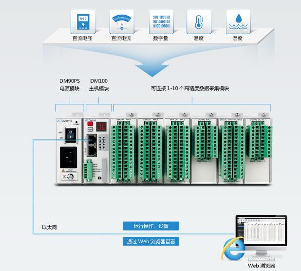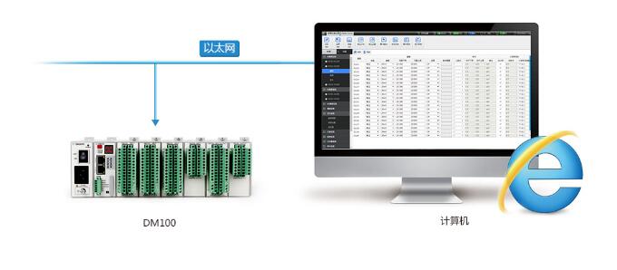 DM100數據采集記(jì)錄儀主機自(zì)帶Web 服務器,通(tong)過以太網接(jiē)口連接電腦(nǎo),用戶進入浏(liu)覽器訪問DM100主(zhu)機IP地址即可(kě)實時監測測(cè)量數據與更(geng)改設置,無需(xū)下載安裝上(shàng)位機軟件,易(yi)用性強。