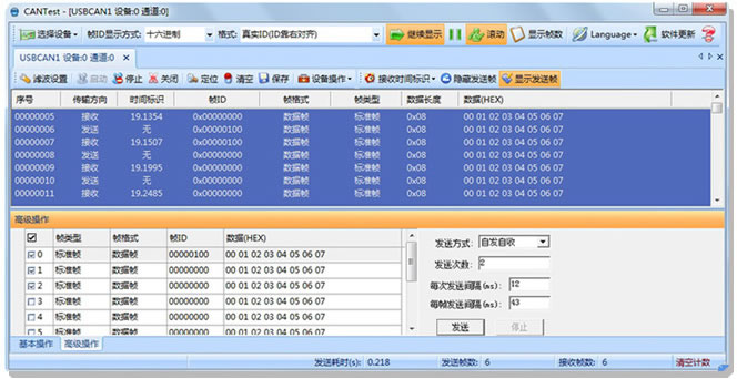 3.高級操作(zuo)可預定義(yì)100幀,并且可(kě)設置發送(sòng)次數與間(jian)隔