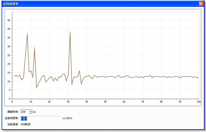 CAN接口卡(kǎ)在任意波(bo)特率下滿(man)負載接收(shou)能力,可以(yi)實現超大(dà)13萬幀緩沖(chòng),保證不丢(diū)幀,爲後期(qi)分析保存(cun)完整的測(ce)試數據。