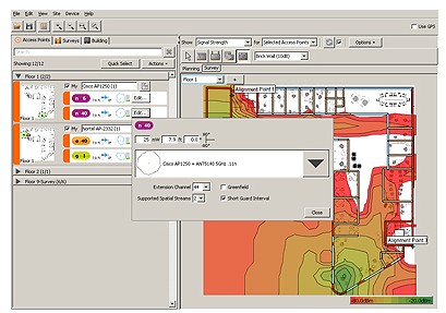 定義環境(jìng)特性,例如牆壁(bi)的原料、接入點(diǎn)電力配置以及(ji)天線的選擇—在(zài)安裝一個接入(ru)點前,查看可能(néng)對無線局域網(wang)性能産生的微(wei)妙影響。