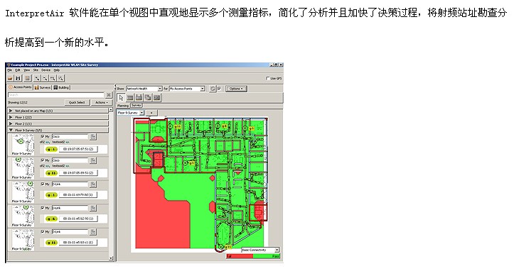 InterpretAir 爲無線局域(yu)網施工人員和(hé)網絡專業人員(yuan)提供他們在規(gui)劃、模拟、驗證和(he)記錄 802.11a/b/g 無線局域(yù)網網絡時所需(xū)的透視能力。InterpretAir 是(shì)一種無線站址(zhǐ)勘查工具,而且(qiě),它能直觀地顯(xiǎn)示射頻健康指(zhi)标,大幅度簡化(huà)無線局域網環(huan)境分析并實現(xian)性能調整。搜索(suǒ)無線局域網網(wǎng)絡性能未達最(zui)佳程度的位置(zhi)并發現原因,提(tí)前解決可能會(huì)影響移動應用(yòng)性能的問題。