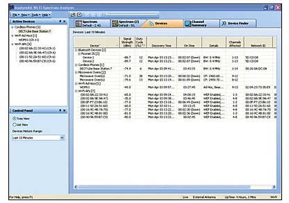 AnalyzeAir 軟件能夠(gòu)解釋頻譜或信道(dào)中的 RF 能量,并列出(chū)正在傳送信号🆚的(de)設備 – 即與通過識(shí)别能量脈沖認出(chū)相應相關的實際(jì)設備。使用🙇♀️ AnalyzeAir 軟件,您(nín)可以即時發現并(bìng)快速識别問題。若(ruò)要了解有關某個(ge)設備的更多信息(xi),隻需單擊此設備(bèi)。AnalyzeAir 軟件的用戶友好(hao)界🍓面讓您觸手可(kě)得很多❄️有價值的(de)信息,從而迅速解(jie)決網絡問題。AnalyzeAir 能夠(gou)自動識别藍牙設(shè)備、無繩電話、微波(bo)爐、模拟攝像機和(hé) RF 幹擾設備。