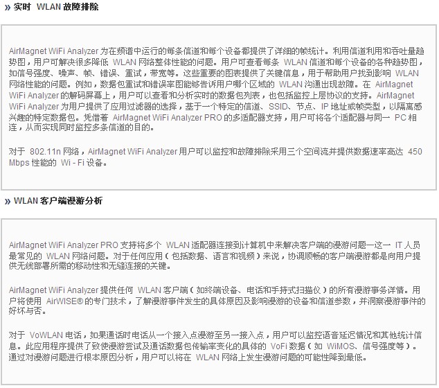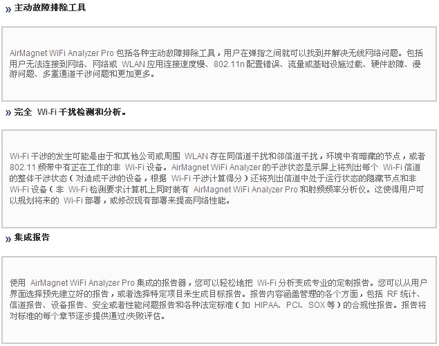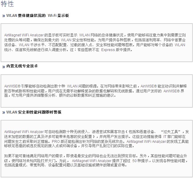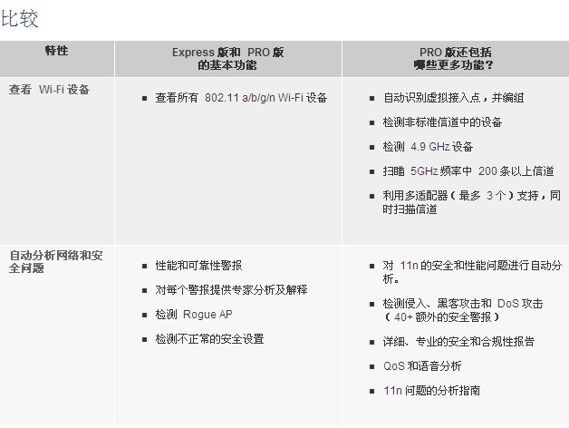 AirMagnet WiFi Analyzer 包括 “Express” 和(hé) “Pro” 兩款産品。AirMagnet WiFi Analyzer Express 提供(gòng)主要的 WiFi 故障處(chu)理和審查功能(néng),可🚶以查看設備(bei)、自動識别常見(jiàn)問題以及定位(wèi)特定設備的位(wei)置🌈。AirMagnet WiFi Analyzer PRO 提供 Express 版的所(suo)有功能,并添加(jia)了很多其他功(gōng)能,爲客戶提供(gòng)了一個可以解(jie)決任何性能、安(an)全性或報告難(nan)題的 Wi-Fi 工具。