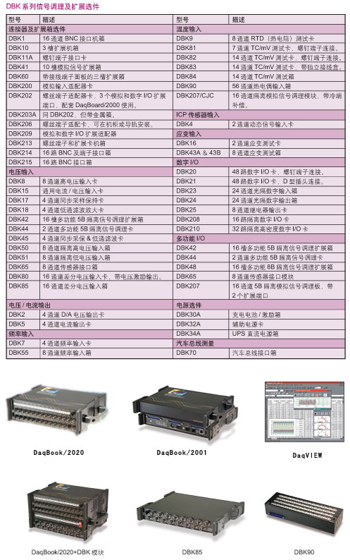 三(sān)種DaqBook機型均通(tong)過DBK系列模塊(kuài)擴展模拟和(he)數字輸入輸(shū)出通道。